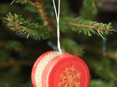 Réutilisez les bouchons de bouteilles d'eau ou de lait en les transformant en boules de Noël... Une idée toute simple à réaliser avec les enfants. De nombreuses combinaisons en...
