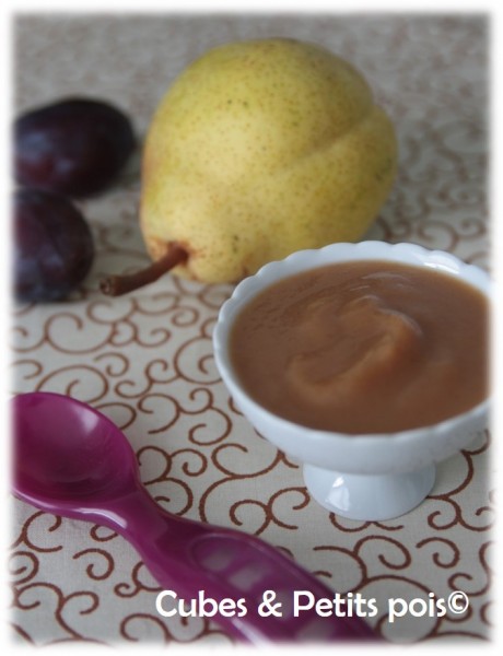 Les fruits sont murs dès 7 mois vous pouvez tout simplement laver la poire, l'épépiner et la mixer avec les prunes préalablement lavées et dénoyautées.