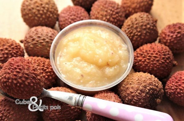 Bébé a déjà mangé des litchis cuits, réalisez une compote de pomme et avant de mixer les pommes ajoutez les litchis préalablement pelés et dénoyautés à la préparation.